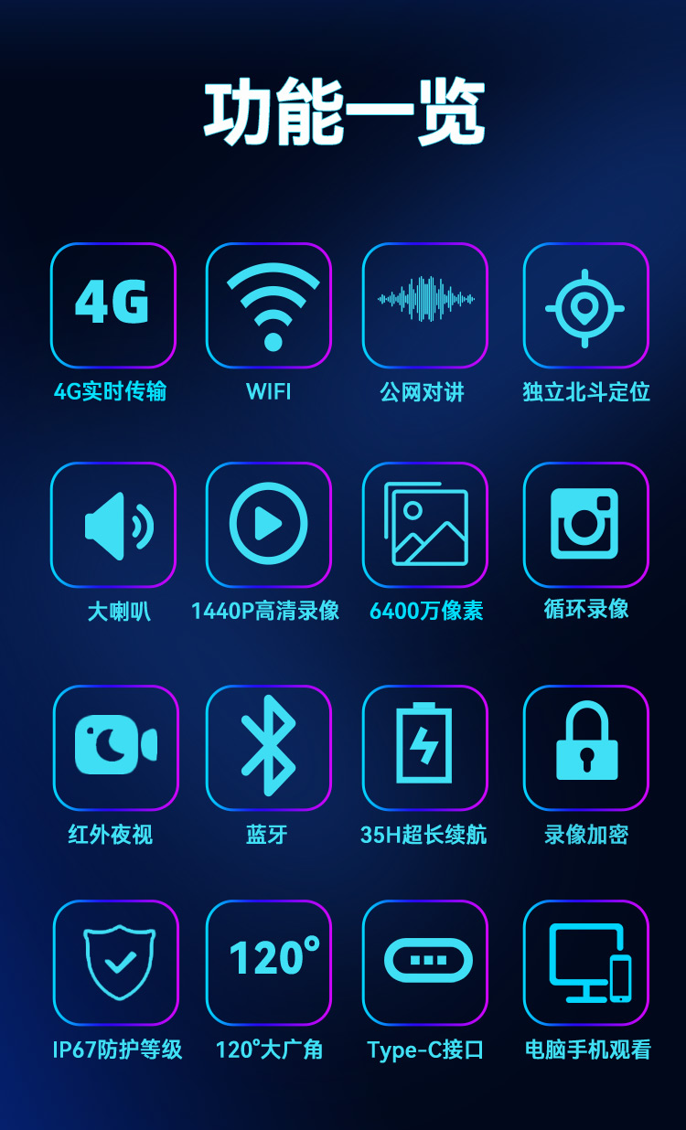 | 对讲功能 | 集群对讲 | 支持终端设备之间的集群对讲功能(该功能需要设备支持4G) |